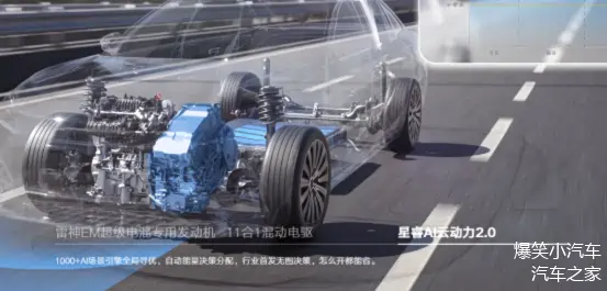 除了调校层面的硬核实力,银河A7的动力系统同样强劲。其首发搭载的雷神AI电混2.0,配备全球量产热效率最高(47.26%)的电混专用发动机与11合1混动电驱,实现馈电加速不受限,0-100km/h加速仅需7.1秒,最高车速达190km/h。配合AI智慧能量管理系统,CLTC工况下百公里馈电油耗低至2.67L(实测2.47L),综合续航超2100km,真正做到“性能与节能兼得”。