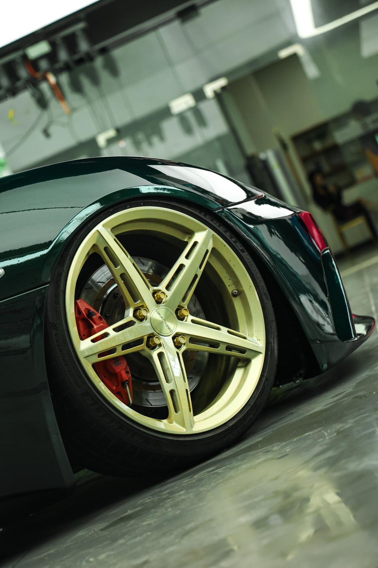 “目前为止就简单改了一下,针对行走部分进行了升级,气动大师X6系统搭配KGO气动避震,外加一套金色的MP锻造轮毂。”