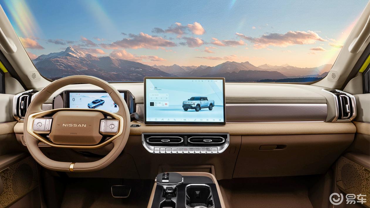 传承日产V-Motion家族前脸基因,锋坦Frontier Pro采用硬核科技美学设计理念。两条凌厉的垂直车头灯与三段式未来感灯组形成视觉焦点,悬浮激光镭雕logo在夜间呈现动态光效。14.6英寸中控大屏搭载L2级组合辅助驾驶系统,配合法国劲浪音响打造的沉浸式座舱,让越野之旅兼具科技感与艺术性。