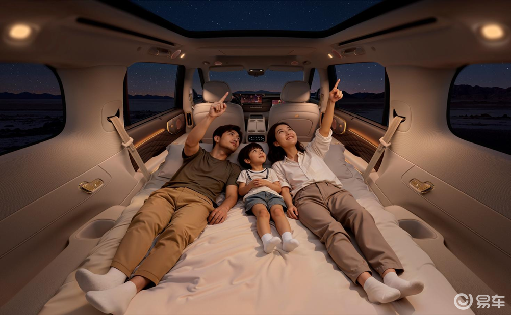 智己LS9车身长度5230mm,轴距3150mm,通过短前后悬设计实现86%超高得房率。座舱布局采用“2+2+2”大六座方案,主驾、副驾、二排右侧均配备零重力座椅,支持165°超大仰角与4D机械按摩,按摩强度可达传统气动方案的7倍。二排左侧独立座椅支持“贵妃椅”模式,一键躺倒即可形成145°黄金护脊角度;三排双座可电动翻折,与后备厢贯通后形成2.2m×1.4m“超级大床房”,轻松容纳两名成年人露营就寝。音响系统采用丹麦B&O 3D环绕歌剧院音响,全车22扬声器+2000W独立功放,每个座位均享“皇帝位”声场。