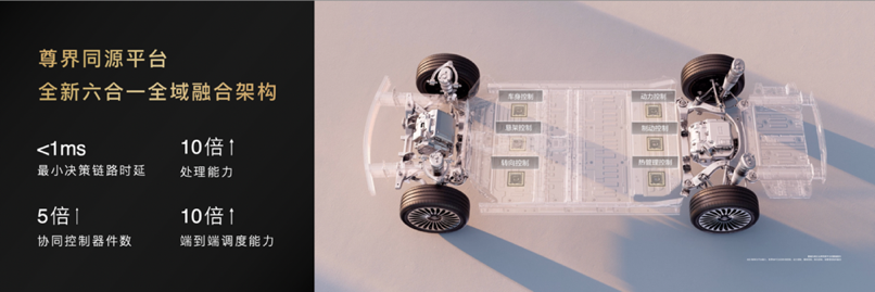 以智能驾驭性能,新款享界S9升级全新一代华为途灵平台,让豪华更从容。新车采用前独立双叉臂,后五连杆悬架设计,标配5档可调的智能空气悬架,全新连续可变阻尼减振器,操控与舒适兼得,机械质感媲美百万豪车;升级尊界同源的全新六合一全域融合架构,决策时间更短,调度能力更强,搭配华为乾崑智驾ADS 4、时空智能悬架网络、HUAWEI XMOTION Control智能车身协同控制及HUAWEI DATS动态自适应扭矩控制等多项技术的协同配合,如同赋予了新款享界S9底盘“明亮的眼睛”、“聪明的大脑”以及“强壮敏捷的四肢”。在出行中,车辆提前路况预瞄,路况空间模型分辨率提升100倍[10],并通过高效智能思考,精细化协同控制,紧急避障精准操控、颠簸路、坑洼路游刃有余。在中汽中心麋鹿测试中,更是取得了84.1km/h[11]的优势成绩,为用户带来颠覆性的操控性能。