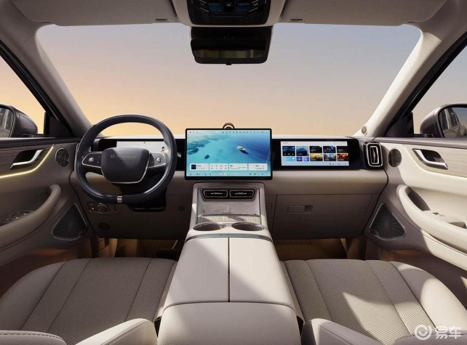 内饰层面,星途ET5的内饰倒是没什么说的,比深蓝S07多了副驾屏和仪表盘,整个设计还是以对称式设计为主,中央通道也比较宽大。这个设计应该是没有延续星纪元ET的设计,而是使用了星纪元ES的设计风格,静态感觉要饱满不少。