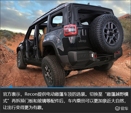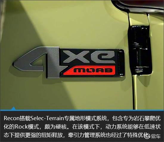 虽然很多人都不喜欢纯电动力系统,但是不得不承认,电动机确实能够为硬派越野车带来更多的可能性。基于出色的动力配置以及四驱系统,Jeep Recon通过了Trail Rated越野认证。作为Jeep品牌独有的越野能力认证体系,其主要考验车辆在非铺装路面和极端地形下的综合性能,以确保其能够在泥地、沙地、岩石等复杂地形中脱困。