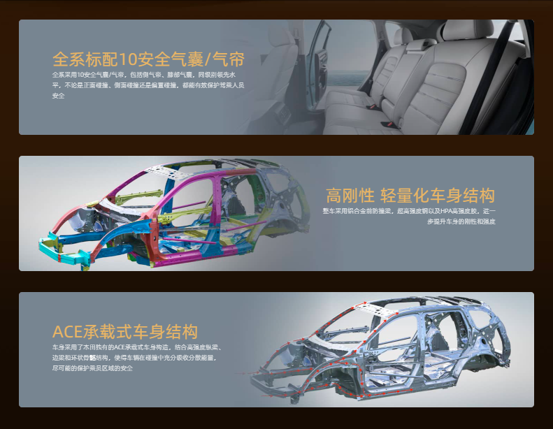 当然,安全与品质,是CR-V从未妥协的价值底线,也是其赢得长久信任的基石。在被动安全上,其ACE承载式车身结构、高达1500兆帕的热成型钢大量应用、全系标配10安全气囊,构成了一个宛如“移动安全堡垒”的防护体系。