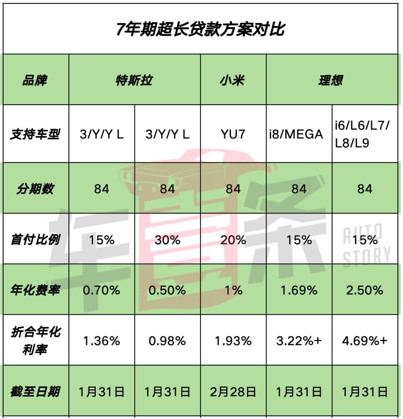 2026年1月,由特斯拉打响第一枪,随后小米、理想、小鹏等新势力迅速跟进,原本主流的“3-5年分期”在半个月内被拉长到了“7年”。这种集体的急迫感,源于三重现实压力的交织。