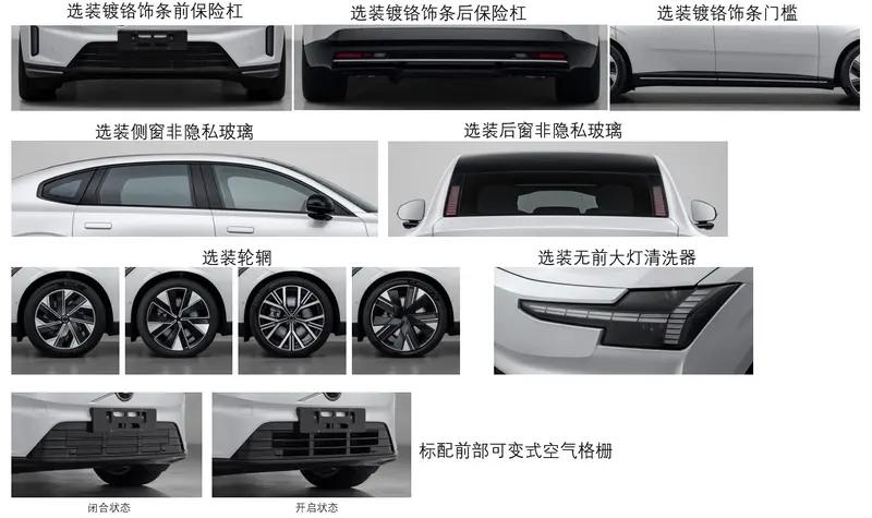 同时,车辆还将采用半隐藏式门把手,车顶配备激光雷达。轮圈方面,新车配备了大尺寸的密辐式设计,营造出豪华氛围。车尾采用贯穿式尾灯,整车具有不错的科技动感。