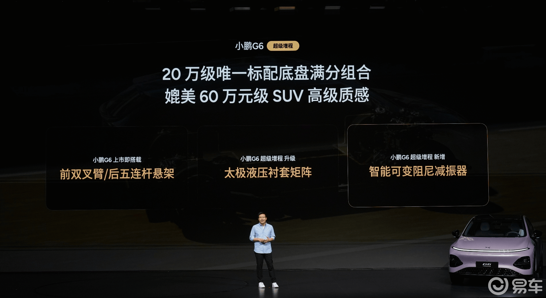 为持续夯实G6的竞争力,刚过去不久的3月6日,小鹏汽车在广州举办新品发布会,正式推出小鹏G6超级增程车型。新车定位“六项全能AI增程SUV”,以续航、补能、智驾、底盘、安全、空间六大维度的均衡表现,满足用户全场景出行需求,新车仅推一个版本,官方指导价18.68万元起,要强调的是,官方同步推出智能升级包。