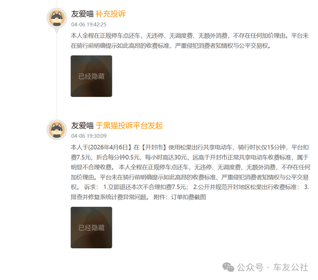 有开封消费者投诉称,骑行15 分钟被扣费 7.5 元,远高于当地共享电单车正常收费标准,且平台未在骑行前明确公示收费标准。