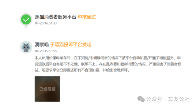 另有消费者反映,松果出行在其不知情/未明确同意的情况下被平台自动扣费/开通了增值服务。